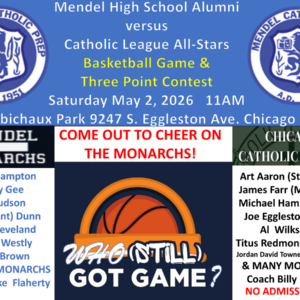 Mendel All-Class Reunion The Mendel Alumni Association proudly announces the next Mendel Monarchs ... 01 May 6:00 pm - 11:00 pm Gaelic ParkOak Forest, IL